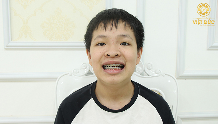 Bệnh nhân sau khi đã gắn mắc cài hoàn thiện