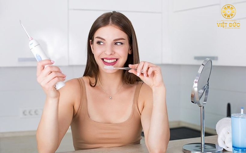 Nha sĩ khuyên cách chăm sóc răng miệng đúng cách: đánh răng 2 lần mỗi ngày trong vòng 2 phút/lần. Dùng tăm nước 1 lần mỗi ngày giúp làm sạch răng miệng hiệu quả